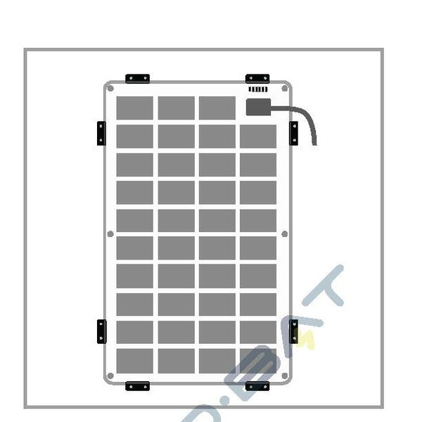 Za pritrditev fleksibilnih solarnih modulov do 3 mm debeline na robu. Material: PUR, (kot trda guma)