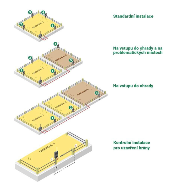 Spremlja kritične točke in takoj obvešča o padcih napetosti. Meri napetost ograjnega sistema in pošilja podatke osrednjemu prehodu.