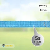 Popoln komplet električne ograje za zaščito zemljišča, polja, sadovnjaka in posevkov pred divjimi prašiči, srnami, jeleni in damjaki. Zmogljiv električni pastir fencee power energy PE60 z močnim transformatorjem in izhodno napetostjo 12 500 V. Visokokakovosten moder trak 20 mm, 250 m, 5 × 0,16 mm polna žica iz nerjavečega jekla. Visoki plastični koli omogočajo namestitev ograje do višine 136 cm nad tlemi.