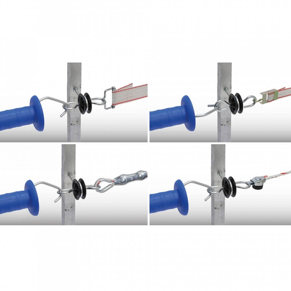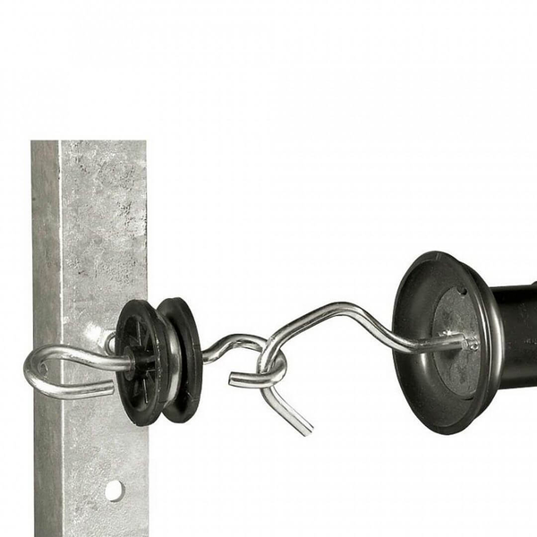 Vratni izolator z dvema kavljema in navojem M6. Primeren za žico, vrvi in trakove do širine 20 mm.
