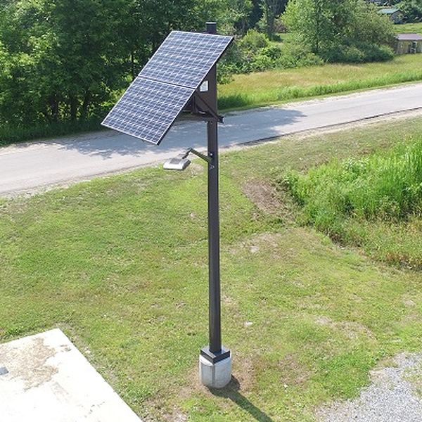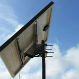 Sistem za pritrjevanje robustne jeklene pocinkane konstrukcije na solarni modul omogoča namestitev modula na kovinski ali leseni drog, pritrjen v tla.