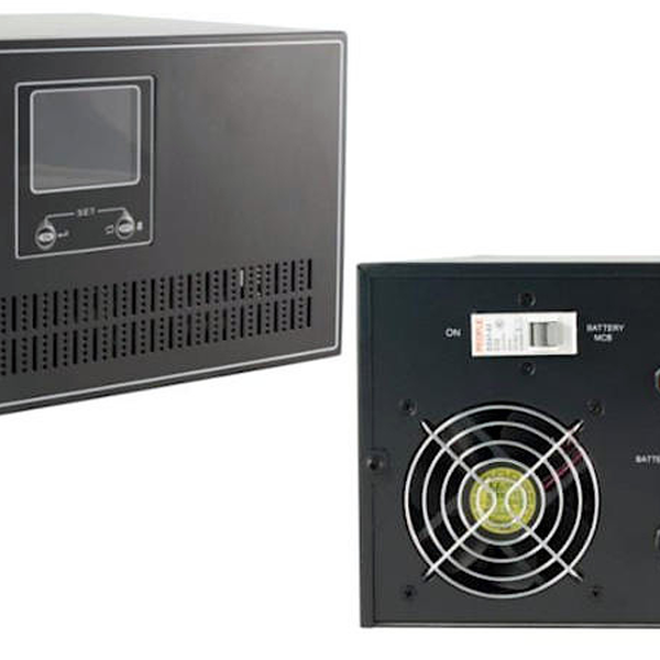 Naprava ima dve vtičnici (šuko) za napajanje porabnikov ter vgrajen LCD zaslon, na katerem lahko spremljamo delovanje sistema, stanje napolnjenosti akumulatorja ter nastavite primeren tok polnjenja akumulatorja.