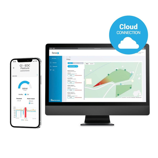 Preprosto povežite EDW Smart Wi-Fi energizer neposredno z Wi-Fi usmerjevalnikom 2,4 GHz. Energizer pošlje zbrane podatke neposredno v oblak, ki jih zbere in usmeri na vaš mobilni telefon. Rešitev v oblaku omogoča daljinsko upravljanje in spremljanje električnih ograj v realnem času od koderkoli s pomočjo brezplačne aplikacije Fencee Cloud. Lahko se uporablja tudi na tablici ali v brskalniku na osebnem računalniku. Neomejen nadzor. Brez dodatnih stroškov. Varnost brezžičnega omrežja WPA2 - PSK / WEP.