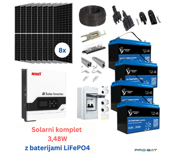 Solarni komplet 3,48kW z hibridnim inverterjem 5kW ter LiFePO4 akumulatorji