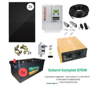 Solarni komplet 870W z razsmernikom (čisti sinus) 1500W - 24V