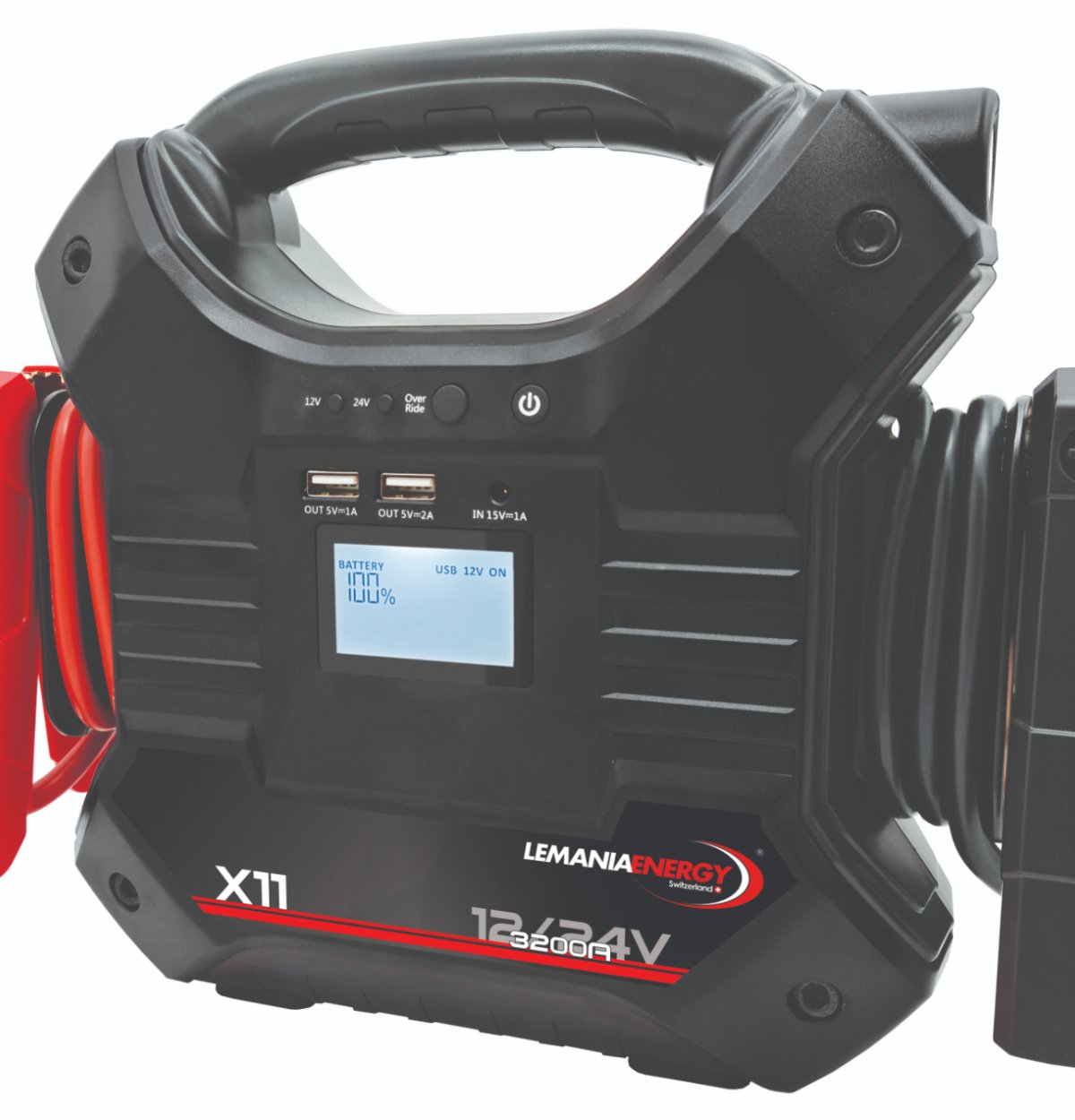 Z litijevo tehnologijo je Booster X11 Lemania Energy lahek in kompakten, zaradi česar bo njegova uporaba izjemno enostavna. Zagotavlja zelo hitro polnjenje, da lahko baterijo porabite v rekordnem času! Poleg tega ima LED svetilko, USB polnilnik, pa tudi LCD zaslon z optimalnim branjem.Njegove sponke so zelo robustne, kar zagotavlja zaščito pred obrnjeno polarnostjo.